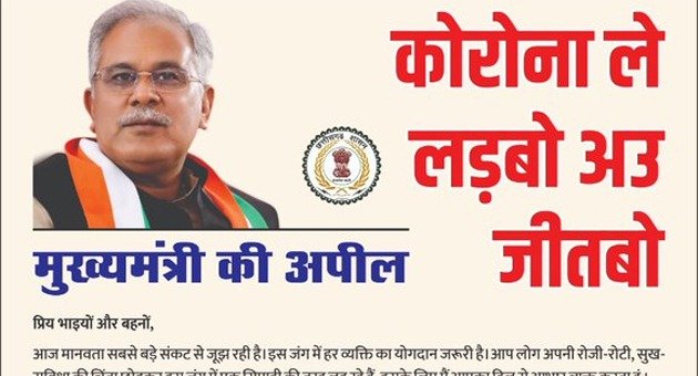 मुख्यमंत्री ने प्रदेशवासियों से की अपील, कोरोना ले लड़बो अउ जीतबो