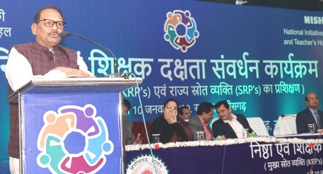 स्कूल शिक्षा मंत्री डॉ. प्रेमसाय सिंह टेकाम ने कहा कि निष्ठा (स्कूल प्रमुखों और शिक्षकों की समग्र उन्नति के लिए राष्ट्रीय पहल) का प्रशिक्षण कार्यक्रम है। स्कूल प्रमुखों और शिक्षकों के लिए राष्ट्रव्यापी अपने तरह का सबसे बड़ा शिक्षण प्रशिक्षण कार्यक्रम है। राज्य में इस कार्य के लिए 1500 स्टेट रिसोर्स पर्सन्स और की-रिसोर्स पर्सन्स को राष्ट्रीय स्तर के स्त्रोत विशेषज्ञों द्वारा प्रत्यक्ष प्रशिक्षण दिया जाएगा। प्रशिक्षित स्त्रोत व्यक्ति सीधे शिक्षकों को प्रशिक्षण प्रदान करेंगे। यह योजना स्कूल प्रमुखों और शिक्षकों की समग्र उन्नति के लिए राष्ट्रीय पहल है। उन्होंने बताया कि राज्य में निष्ठा प्रशिक्षण कार्यक्रम के साथ राज्य की आवश्यकता आधारित दो दिवसीय प्रशिक्षण शिक्षकों को दिया जा रहा है, जिसमें राज्य में शिक्षा के क्षेत्र में चल रही नवाचारी योजनाओं, कार्यक्रमों के संबंध में शिक्षकों को जानकारी प्रदान की जाएगी। प्रशिक्षण अभियान में भाषा, गणित, सामाजिक विज्ञान विषय मुख्य केन्द्र होंगे। प्रशिक्षण के दौरान कठिनाई क्षेत्रों के लिए काउंसिलिंग की व्यवस्था होगी। विद्यार्थियों की परेशानी को समझने के लिए विशेष फोकस ट्रेनिंग दी जाएगी।