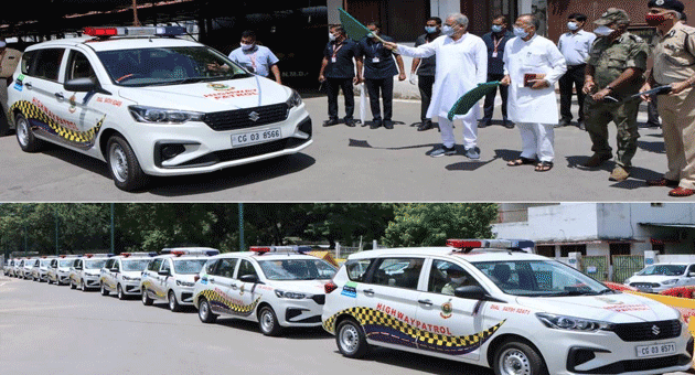रायपुर। मुख्यमंत्री भूपेश बघेल ने आज यहां अपने निवास कार्यालय में हाईवे पेट्रोलिंग हेतु 15 वाहनों को हरी झंडी दिखाकर रवाना किया। इस अवसर पर मुख्यमंत्री श्री बघेल ने कहा कि नागरिकों को इससे सुगम, सुरक्षित और निर्बाध आवागमन की सुविधा मिलेगी साथ ही सड़क दुर्घटना पीड़ितों को भी तत्काल राहत और सहायता मिल सकेगी। उन्होंने कहा कि शासन दुर्घटनाओं को नियंत्रित करने के लिये प्रतिबद्ध है। दुर्घटनाजन्य स्थलों की पहचान कर हाईवे पेट्रोलिंग वाहनों के माध्यम से घायलों को शीघ्र ही मदद मिल पाएगी। शीघ्र मदद मिलने से सड़क दुर्घटना में घायल लोगों की जान बच सकेगी और दुर्घटनाओं में भी कमी आएगी। मुख्यमंत्री श्री बघेल द्वारा दस जिलों बलौदाबाजार, धमतरी, बालोद, बेमेतरा, कोरिया, जशपुर, सूरजपुर, बलरामपुर, कांकेर और कोण्डागांव के लिये 15 हाईवे पेट्रोल वाहनों को रवाना किया गया।