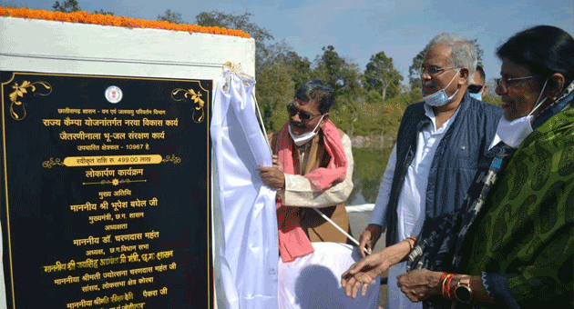 रायपुर। मुख्यमंत्री भूपेश बघेल आज जांजगीर चांपा जिले से हेलीकाप्टर द्वारा प्रस्थान कर दोपहर 1 बजे प्रदेश के नवगठित गौरेला-पेंड्रा-मरवाही जिले की ग्राम पंचायत जोगीसार पहुंचे। उन्होंने यहां कैम्पा मद से नरवा विकास योजना के अंतर्गत जैतरणी नाला पर 36 लाख 53 हजार रुपये की राशि से निर्मित स्टाप डेम का निरीक्षण किया। श्री बघेल नेे इस अवसर पर नरवा विकास योजना के तहत जैतरणी नाला पर ही 4 करोड़ 99 लाख रुपये की राशि के कराए गए भूजल संरक्षण कार्यों का लोकार्पण किया। तत्पश्चात उन्होंने ग्रामीणों से मुलाकात की। इस अवसर पर छत्तीसगढ़ विधान सभा के अध्यक्ष डॉ. चरण दास महंत, लोकसभा सांसद ज्योत्सना महंत तथा राजस्व मंत्री जय सिंह अग्रवाल मौजूद थे।