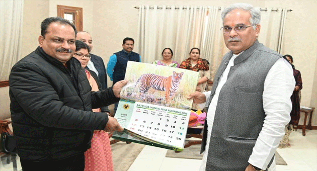 रायपुर। मुख्यमंत्री भूपेश बघेल से आज यहां अपने निवास कार्यालय में सतपुड़ा वन्यजीव फाउंडेशन द्वारा प्रकाशित वर्ष 2020 के कैलेण्डर का विमोचन किया। मुख्यमंत्री ने इस अवसर पर उपस्थित सतपुड़ा वन्यजीव फाउंडेशन के अध्यक्ष संदीप पौराणिक को कैलेण्डर के विमोचन पर बधाई और शुभकामनाएं दी। कैलेण्डर में छत्तीसगढ़ के जंगलों में पाए जाने वाले वन्य जीवों को भी प्राकृतिक परिवेश में सुंदर चित्रों के माध्यम से प्रकाशित किया गया है।