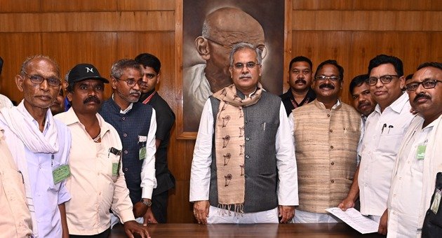 रायपुर(बीएनएस)। मुख्यमंत्री भूपेश बघेल से आज यहां उनके विधानसभा परिसर स्थित कार्यालय कक्ष में छत्तीसगढ़ कोटवार संघ के सदस्यों ने सौजन्य मुलाकात की। उन्होंने मुख्यमंत्री को अपनी मांगों एवं समस्याओं से अवगत कराया। इस अवसर पर कोटवार संघ के सचिव गिरवर दास मानिकपुरी सहित विभिन्न जिलों से आए कोटवार उपस्थित थे।